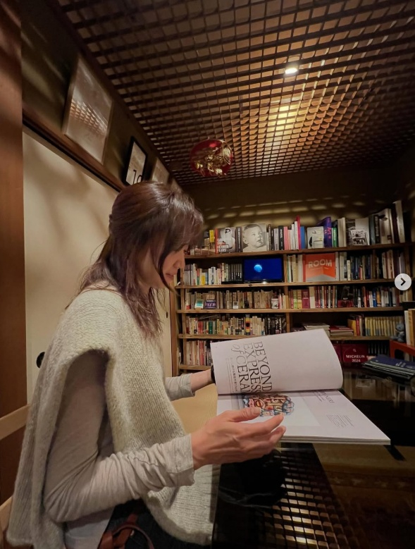 사진 속 그는 일본 주택 느낌이 나는 공간에서 책을 보며 여유를 즐기고 있었다.