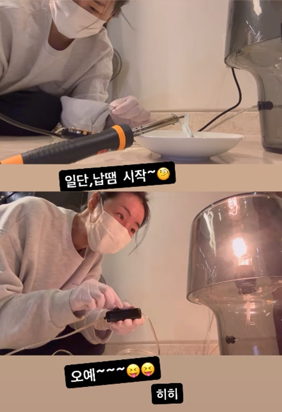 최지우는 10일 자신의 개인계정에 "좋아하는 테이블 조명. 아무래도 연결선 접촉 고장 같아서. 일단 납땜 시작"이라며 영상을 게재했다.
