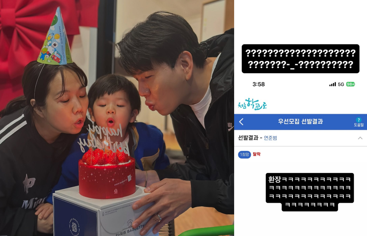 공개된 화면 속에는 제이쓴, 홍현희 부부의 아들 연준범 군이 어린이집 우선 모집에서 탈락한 것으로 보인다. 앞서 그는 "제발"이라며 준범 군의 어린이집 입소 원서 접수 창을 공개한 바 있다.