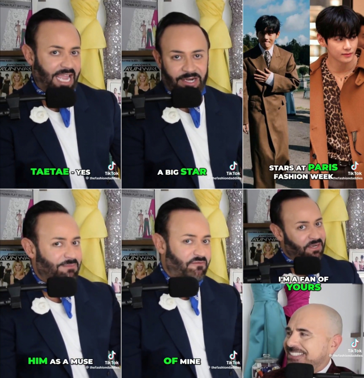 미국 패션 디자이너 닉 베레오스(Nick Verreos)는 최근 파리 패션 위크의 셀린느 패션쇼에서 뷔를 보고 팬이 되었다고 밝히고, 뷔를 '태태'와 '태형'으로 부르면서 자신의 새로운 뮤즈라고 팬심을 드러냈다.