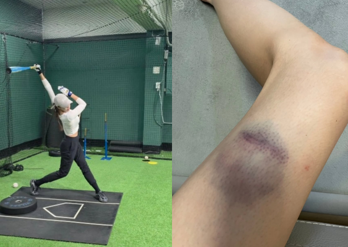 신수지는 25일 첫 방송을 앞둔 채널A 새 스포츠 예능 '야구여왕' 훈련 과정에서 생긴 투혼의 멍 자국 사진을 공개했다.