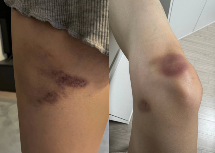 전 국가대표 리듬체조 스타 신수지가 '야구여왕' 합류 이후 훈련하며 생긴 피멍을 공개했다.