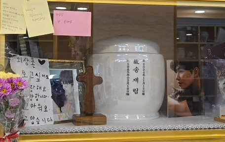 사진 속 송재림의 납골당은 그의 친인척들이 방문해 메모를 남긴 흔적이 있었다.