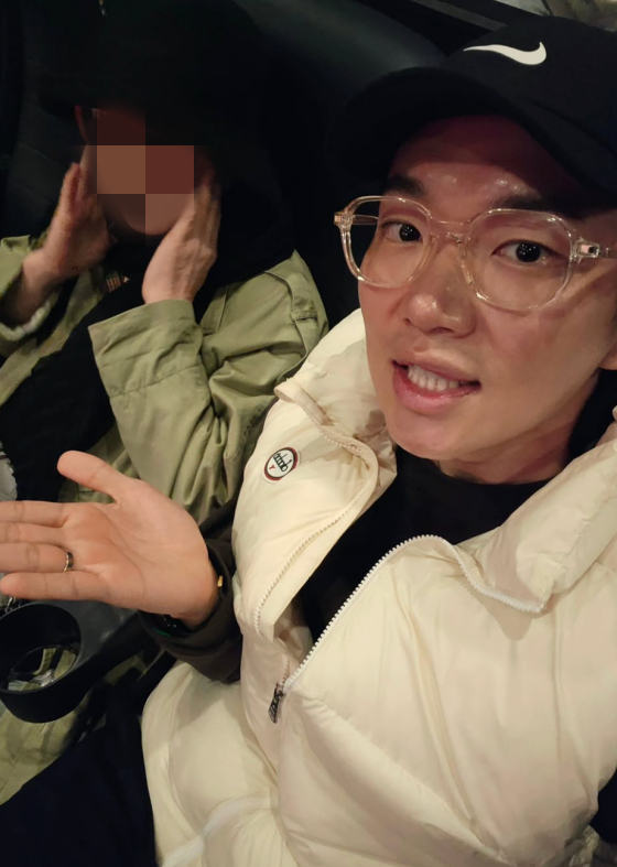 그가 올린 사진 속 장성규 모자는 환한 미소로 영화 데이트를 즐기고 있다.