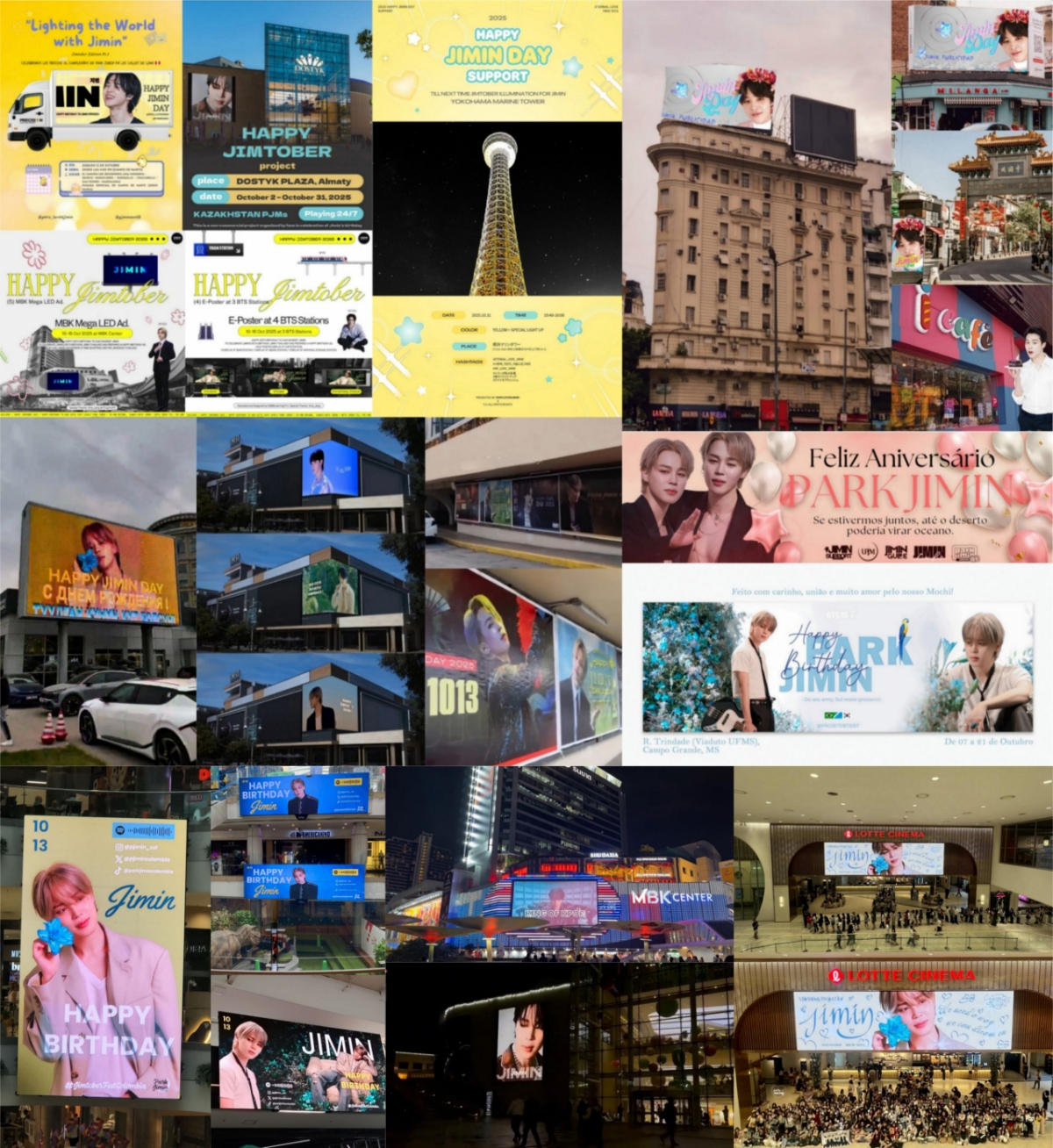 태국 방콕의 BMK 센터 메가 LED 스크린에서는 10월 10일부터 16일까지 지민 생일 축하 영상 광고를 진행했으며 같은 기간 태국 지상철 BTS의 역 3곳 (ASOKE, SIAM, NATIONAL STADIUM)에서 E포스터 광고에 이어 필리핀 마닐라에 위치한 Ayala Mall에 대형 광고, 베트남 하노이 롯데시네마 대형 스크린 광고가 진행됐다.