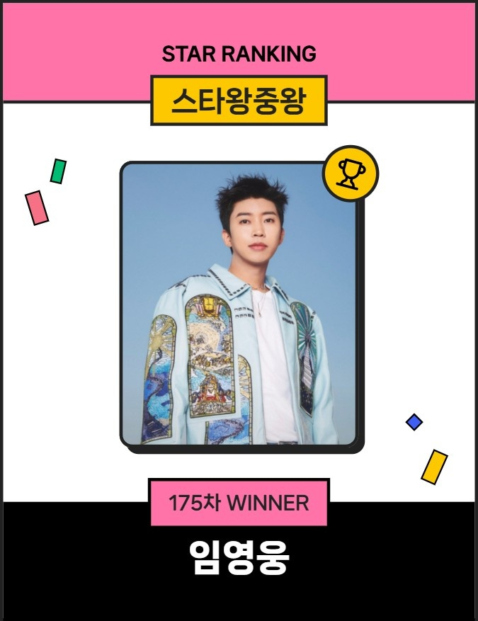 임영웅은 11월 7일 오후 3시 1분부터 14일 오후 3시까지 진행된 175차 스타왕중왕 랭킹 투표에서 30만 7551표를 받으며 1위에 이름을 올렸다.