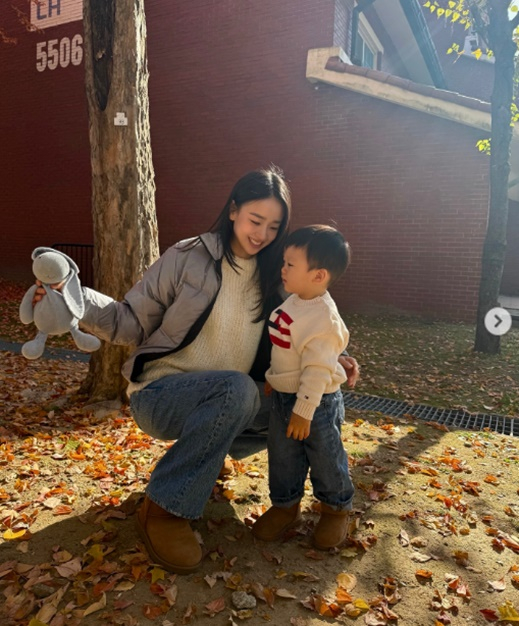 공개된 사진 속 손연재는 아들 준연군과 행복한 가을을 만끽하고 있다. 가을 패션을 맞춰입은 모자가 아름다워 보인다.