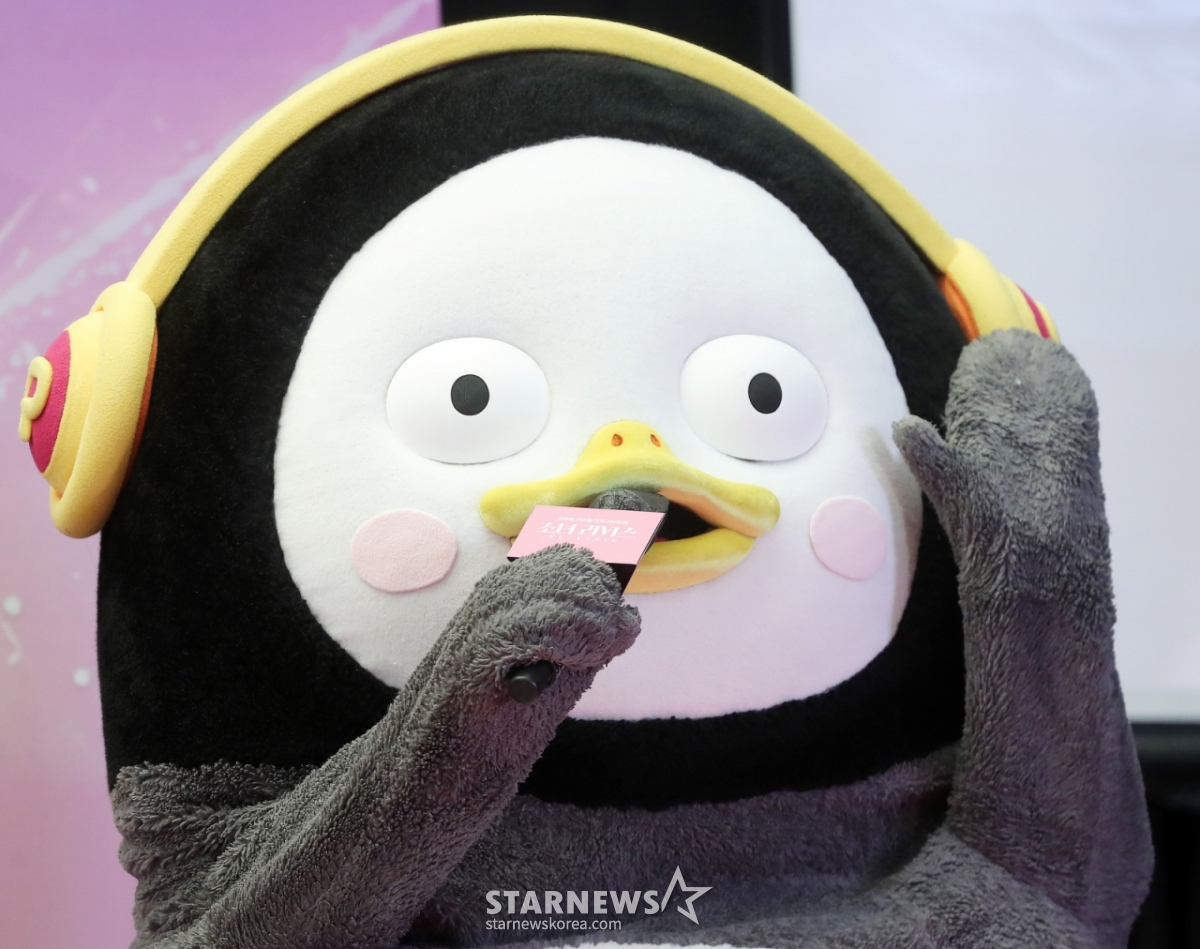 캐릭터 펭수가 27일 오전 서울 마포구 상암동 스텐포드호텔에서 열린 카카오페이지 '소녀 리버스' 제작발표회에 참석해 인사말을 하고 있다. 국내 최초 버추얼 아이돌 '소녀 리버스'는 현실 세계 K팝 걸그룹 멤버 30명이 현실 세계에서의 정체를 완벽히 숨긴 채 새로운 버추얼 캐릭터를 통해 춤과 노래 실력은 물론, 스타로서의 끼와 매력을 선보이며 최종 5명의 데뷔 멤버가 되기 위한 치열한 경쟁을 펼치는 서바이벌 프로그램으로 오는 2023년 1월 2일 첫 공개 예정이다. 2022.12.27