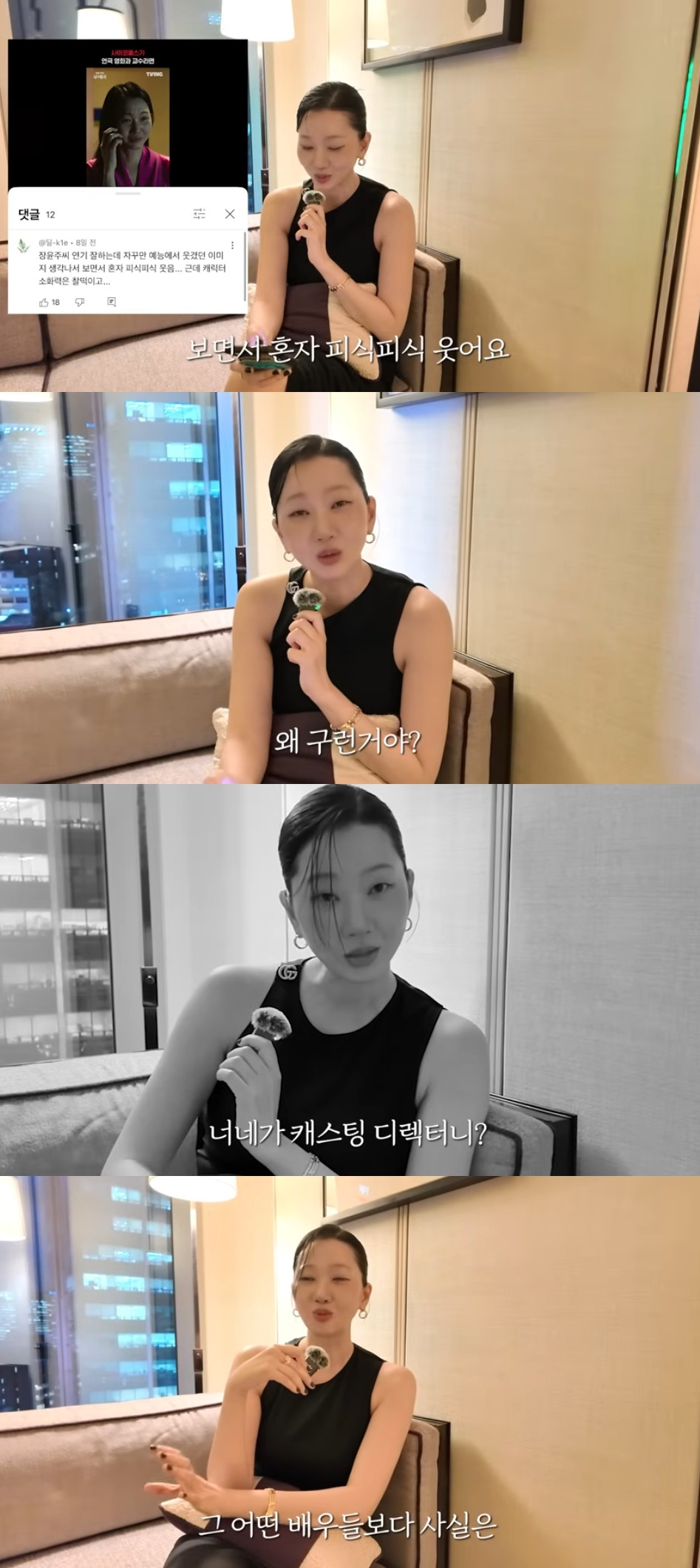 장윤주는 "'언니 꼭 연기까지 해야돼?'라고 하는데 하면 안 되니? 하고 싶어. 나 서울예대 연기과 나왔어. 계속 나한테 '미스 캐스팅'이라고 하는데 너희가 캐스팅 디렉터냐. 나 감독님이 픽한 사람이다"라고 강조했다. 장윤주는 "악플 읽고 약간 눈물이 나온다"고 했다.