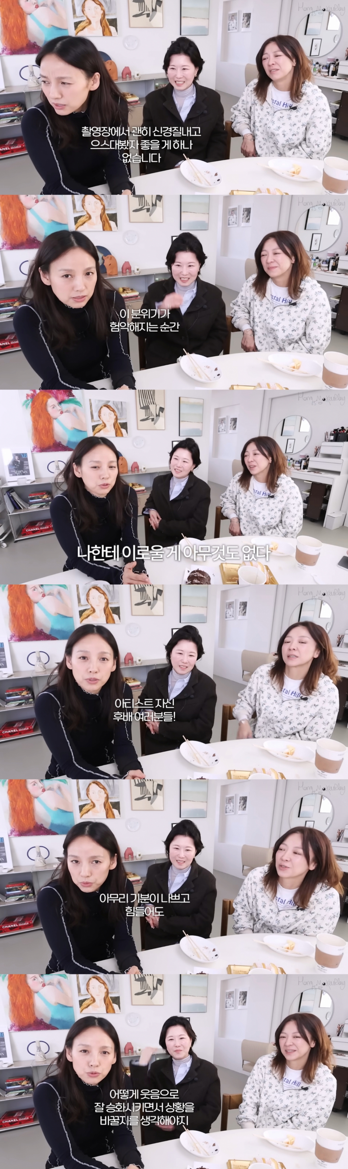 이효리는 카메라를 바라보며 "아티스트 자신, 후배 여러분. 아무리 기분 나쁘고 힘들어도 그걸 웃음으로 잘 승화시키면서 상황을 바꿀지를 생각해야 한다. 안 그러면 나한테 이로울 게 아무것도 없다"고 말했다.