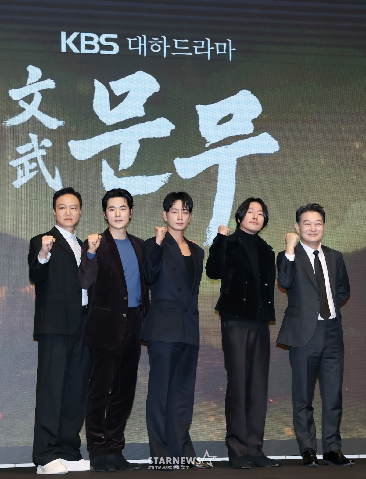 연예방송'문무 화이팅'[★포토]발행 : 2025.11.18 ・ 14:47이동훈 기자배우 정웅인, 김강우, 이현욱, 장혁, 조성하가 18일 오후 서울 구로구 더세인트에서 진행된 KBS 2TV 대하드라마 '문무' 제작보고회에 참석해 포즈를 취하고 있다.'문무'는 약소국 신라가 고구려, 백제를 넘어 당나라까지 물리치고, 삼국통일을 완성한 위대한 승리의 역사를 조명하는 역사 드라마다. /2025.11.18<저작권자 © 스타뉴스, 무단전재 및 재배포 금지>브리핑배우 정웅인, 김강우 등이 참여한 KBS 대하드라마 '문무' 제작보고회가 18일 서울에서 열렸다. 이 드라마는 신라의 삼국통일 역사를 다룬다.추천 기사이동훈 기자기자홈좋아요연예-방송의 인기 급상승 뉴스연예-방송의 최신 뉴스