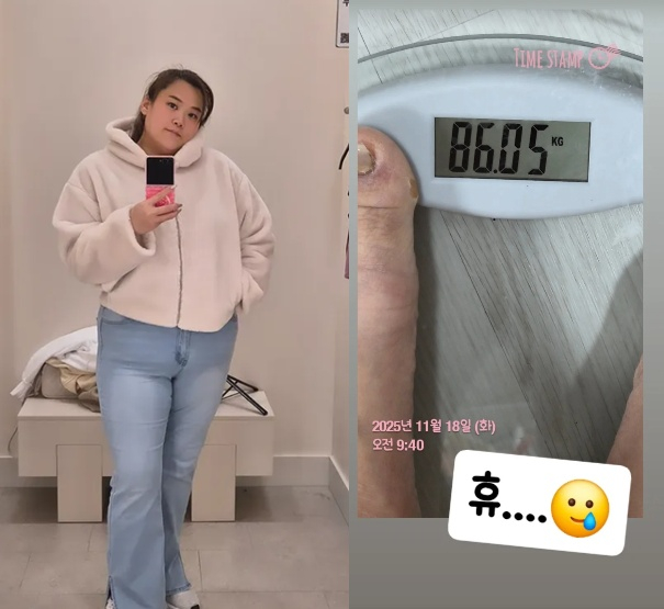 박수지는 18일 "휴"라는 문구와 함께 자신의 현재 몸무게 86kg를 인증했다.