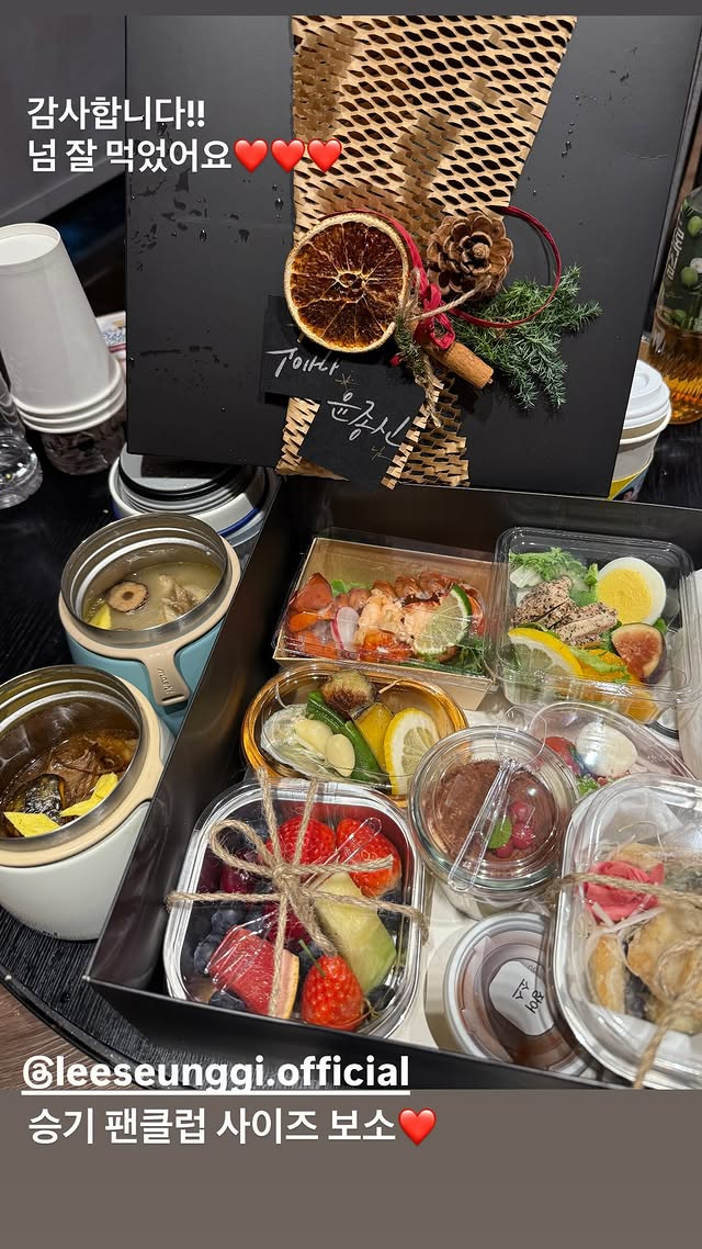 윤종신과 이승기는 현재 JTBC '싱어게인4'에서 각각 심사위원과 MC로 출연 중이다. 특히 이날은 이승기의 새 디지털 싱글 '너의 곁에 내가'가 발매된 날이기에 이승기 팬들은 이를 기념하기 위해 도시락을 선물한 것으로 보인다.