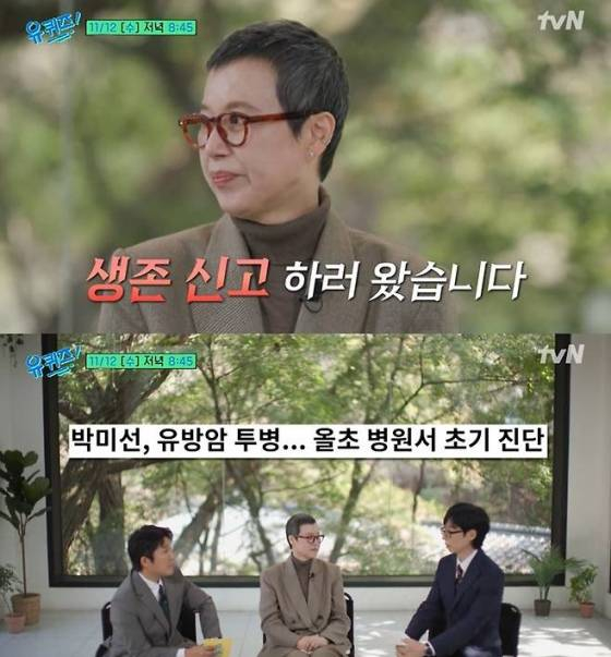 이어 "얼마 전 tvN '유 퀴즈 온 더 블럭'에 나온 걸 봤다. 유방암에 강하게 대처하고, 어머니로서 강인한 모습이 자식들에게 귀감이 됐을 거라고 본다. 삭발한 모습을 봤다. 나도 삭발했다. 한번 보고 싶다"고 말했다.