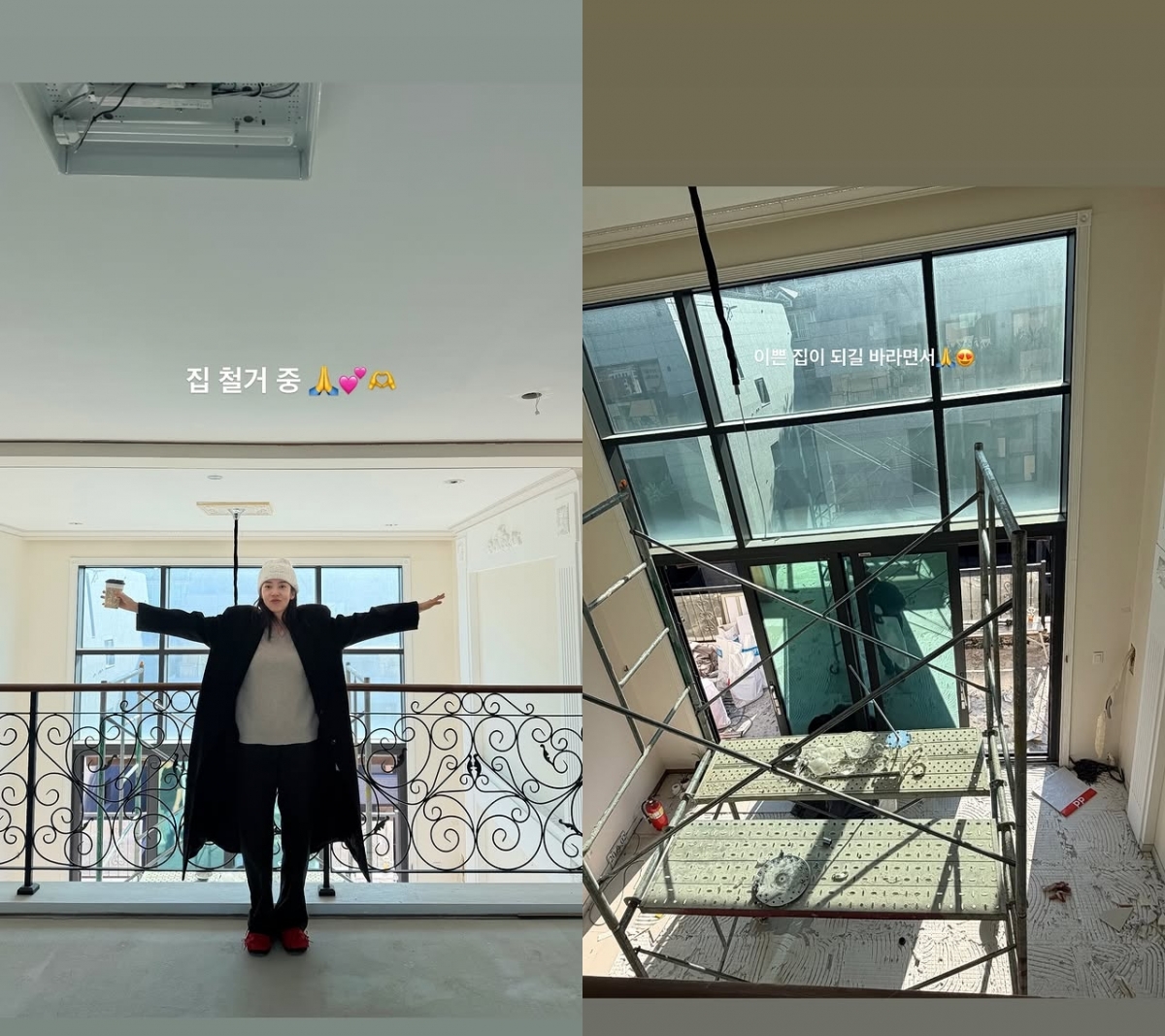 공개된 사진 속에는 집을 철거 중인 공간에 방문해 이사할 집에 대한 기대감을 표현하고 있는 손담비의 모습이 담겼다. 그는 "예쁜 집이 되길 바라면서"라고 전했다.