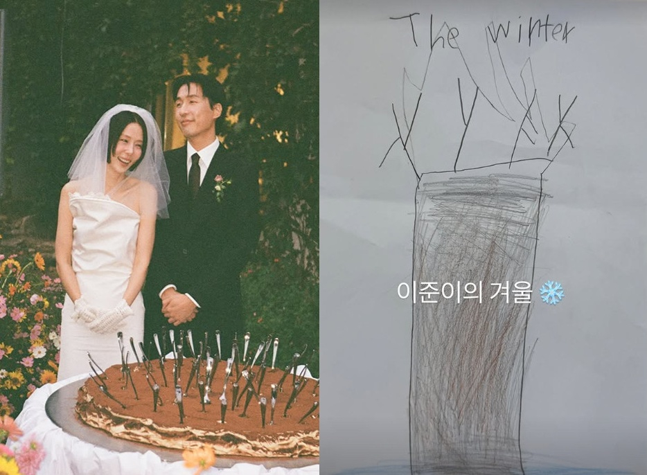 공개된 사진 속엔 둘째 아들 이준 군이 그린 그림이다. 겨울을 상징한 만큼, 쓸쓸하고 추운 분위기가 더해진다.