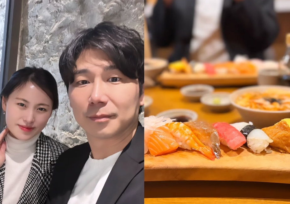 사진 속 두 사람은 초밥집에서 식사를 함께 하며 화기애애한 분위기를 자아내고 있다.