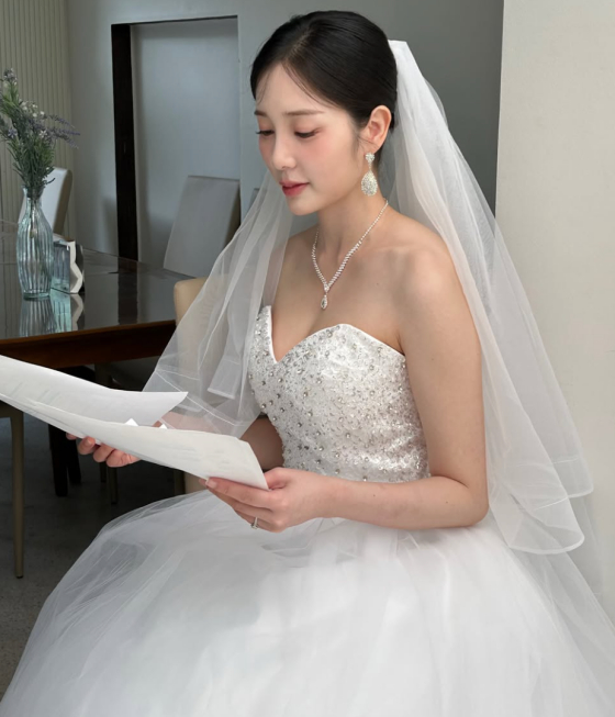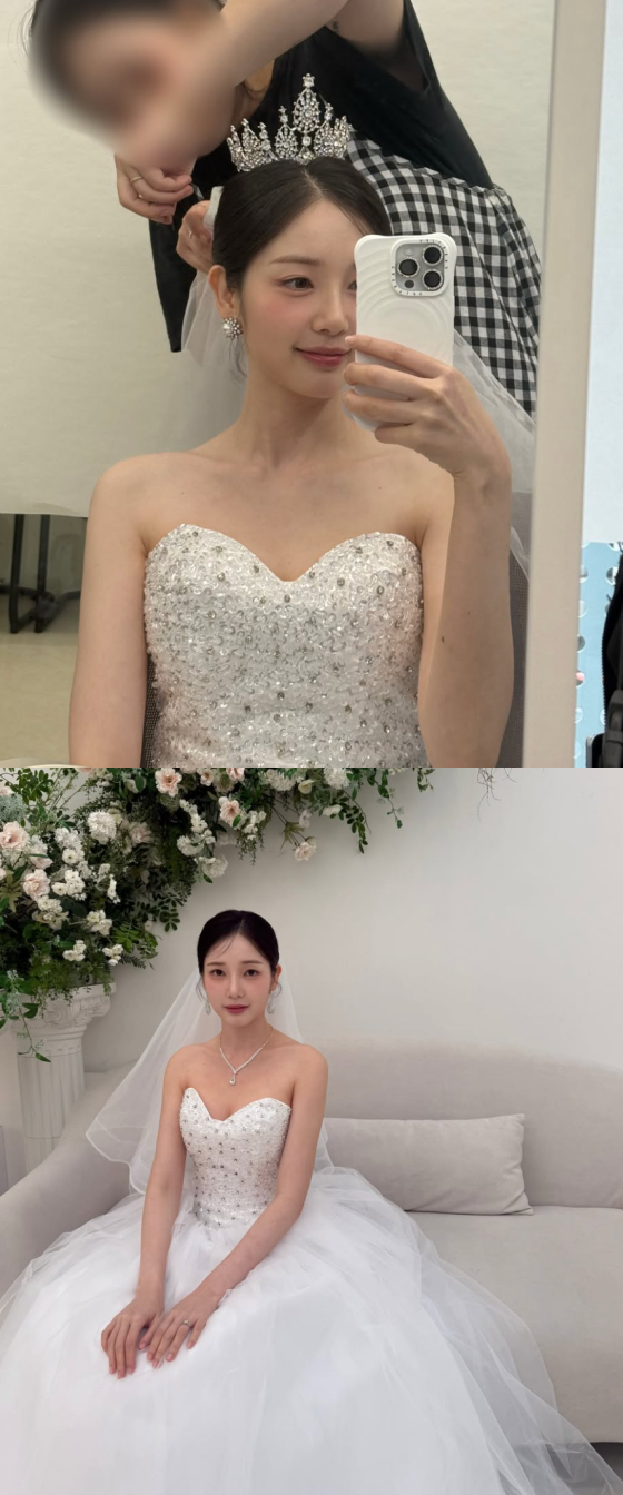 공개된 사진에는 웨딩 드레스 자태를 뽐내는 윤채경의 모습이 담겨 있다.