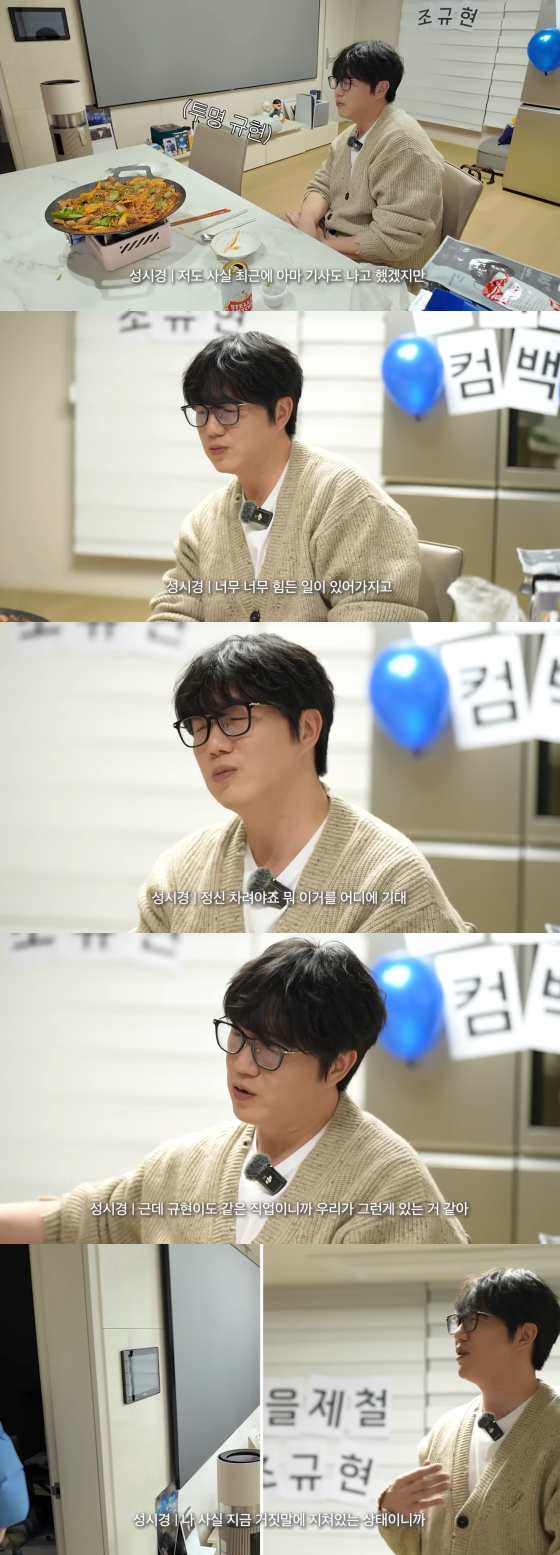 성시경은 규현을 기다리던 중 "요즘 너무 힘든 일이 있어서"라며 "마음을 다잡고 있다. 정신 차려야 한다. 어딜 기대냐"고 털어놨다.