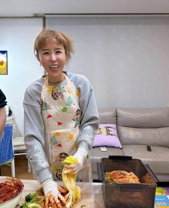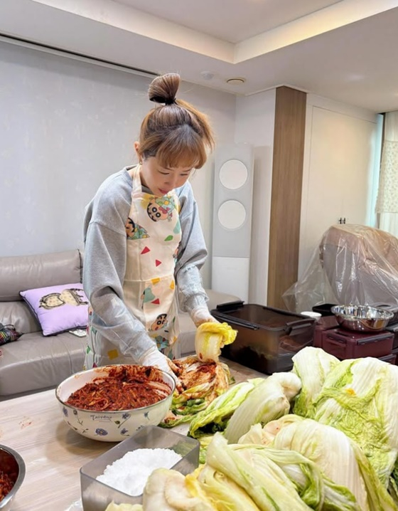 공개된 사진에는 김장 중인 신지의 모습이 담겼다.