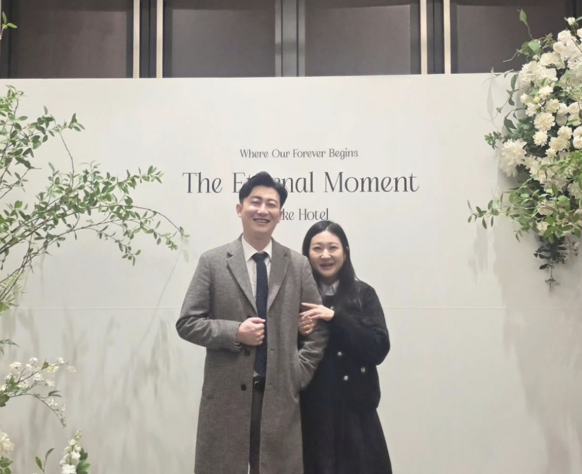 깔끔한 하객 스타일의 셀카부터 결혼식장 앞에서 찍은 투샷까지 공개하며 예비 부부 같은 분위기를 풍겼다.