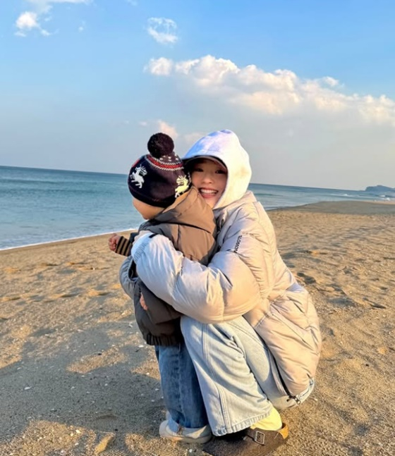 공개된 사진에는 가족들과 강원도 양양으로 여행을 떠난 손연재의 모습이 담겼다. 손연재는 드넓게 펼쳐진 양양 바닷가 앞에서 아들과 행복한 시간을 보내고 있다.