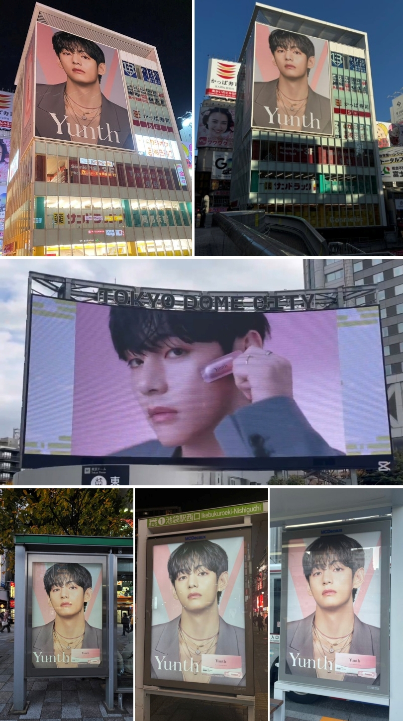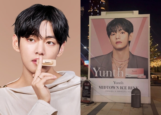 뷔가 글로벌 앰버서더로 활동하고 있는 일본 뷰티 브랜드 윤스(Yunth)는 도쿄 미드타운의 아이스 링크와 컬래버레이션 프로젝트를 발표했다. 윤스는 "뷔의 특대 광고 등장! 겨울동안 윤스와 멋진 시간을 보내자"라는 문구와 함께 아이스 링크를 장식한 뷔의 캠페인 사진을 공개했다.