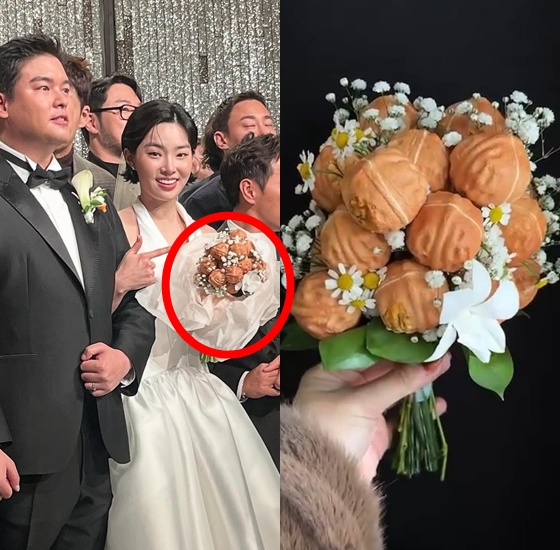 뿐만 아니라 이들 부부는 '부케'마저 '호두과자'로 만드는 파격적인 선택을 해 대중의 이목을 집중시켰다. 보통 톱스타들 결혼식에 쓰인 부케가 수백만 원, 많게는 수천만 원에 달하는 생화이기에, 이번 '호두과자 부케'가 놀랍지 않을 수 없다.