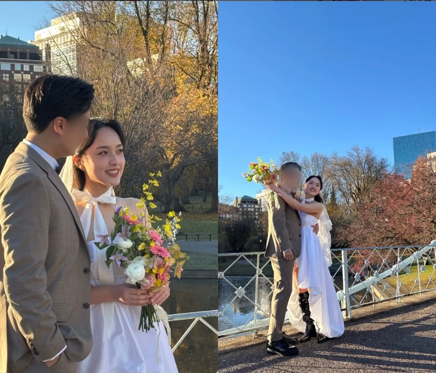 공개된 영상 속에는 김선진의 딸 윤경 양이 미국 보스턴에서 웨딩 화보를 촬영 중인 모습이 담겼다. 김선진은 "웨딩 촬영. 보스턴. 행복"이라는 해시태그를 덧붙였다.