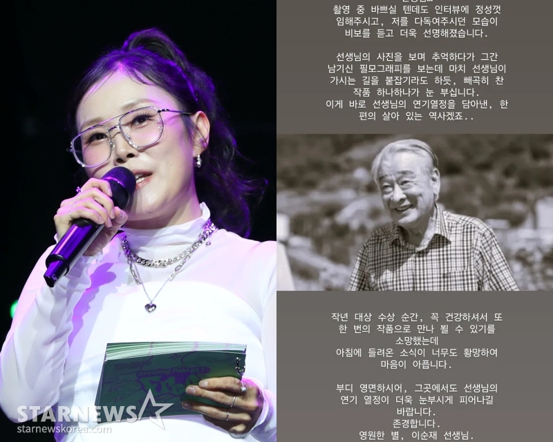 이어 박슬기는 "작년 대상 수상 순간 꼭 건강하셔서 또 한번의 작품으로 만나뵐 수 있기를 소망했는데 아침에 들려온 소식이 너무도 황망하여 마음이 아픕니다. 부디 영면하시어 그곳에서도 선생님의 연기 열정이 더욱 눈부시게 피어나길 바랍니다. 존경합니다. 영원한 별, 이순재 선생님"이라고 전했다.