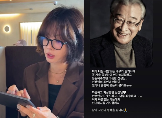 25일 양미라는 자신의 인스타그램에 "미라 너는 색깔 있는 배우가 될 거라며 꼭 계속 공부하고 연기 놓지 말라고 응원해주셨던 따뜻한 선생님"이라는 글과 이순재의 사진을 올렸다.