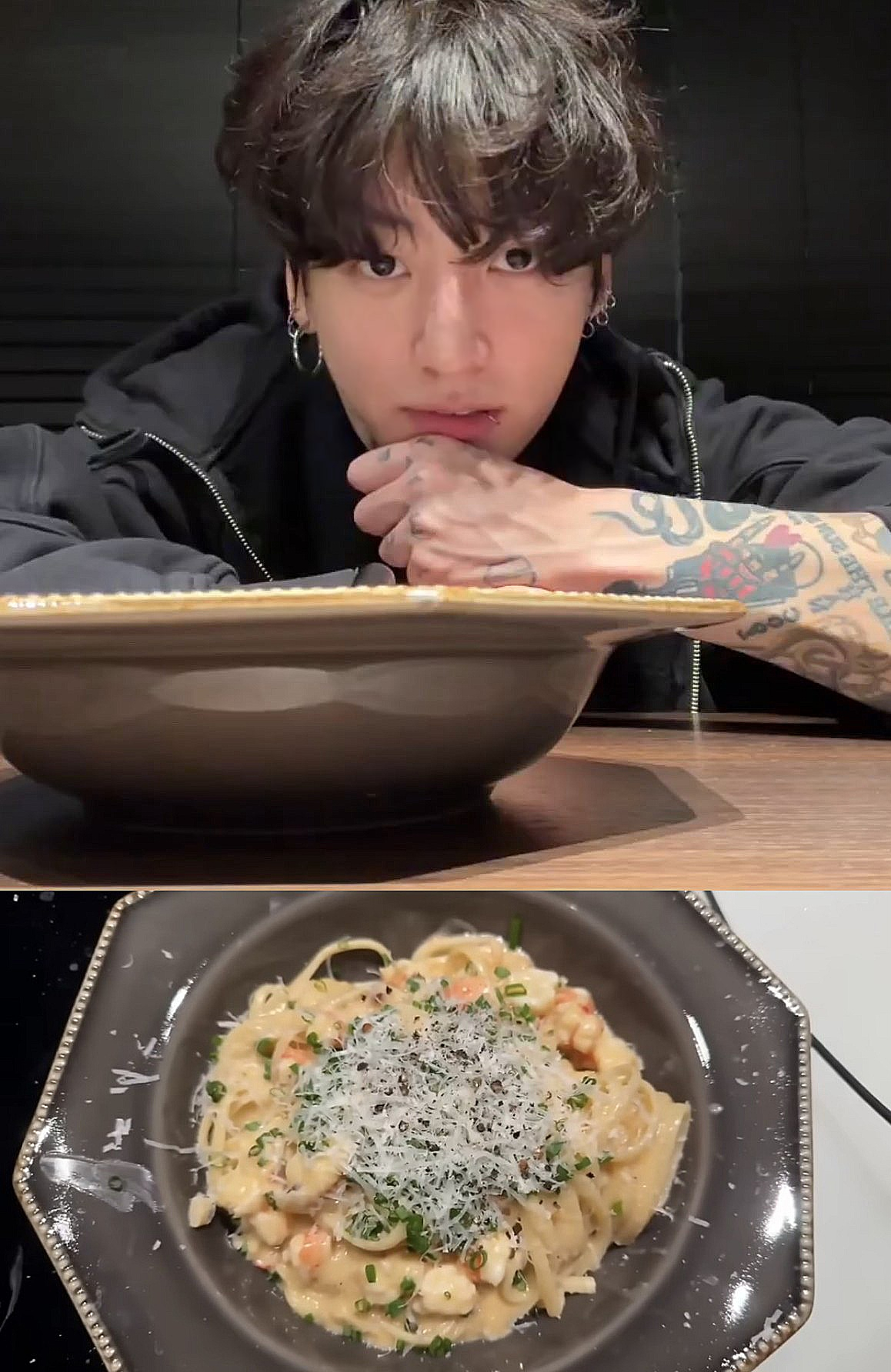 정국은 자신의 집 주방에서 라이브 방송을 켰고 "오늘도 배가 고파서 라이브를 켰다" 며 한참 동안 진지하게 칼을 가는 모습으로 선보일 메뉴에 대한 기대감을 한껏 끌어올렸다. 이어 "오늘도 새로운 파스타 만들기" 라고 말하며 마늘 10개를 평평하게 썰었다.