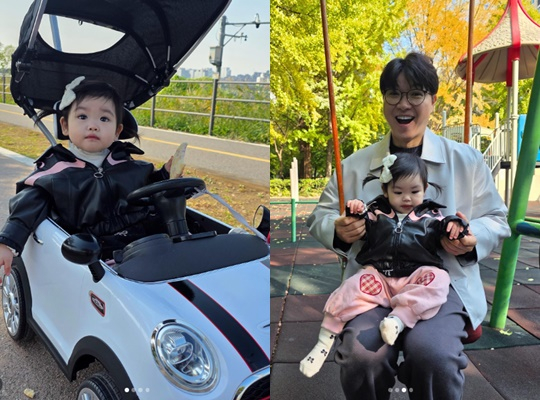 공개된 사진 속 재이는 어린이용 푸시카를 타고 위풍당당하게 미소 짓고 있다. 자신의 자동차가 생긴 것이 즐거운듯한 모습이다.
