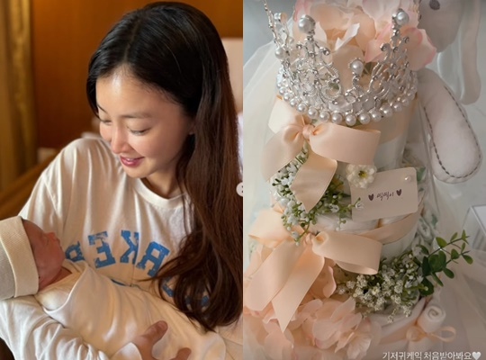 배우 이시영이 최근 둘째를 출산한 가운데 기저귀 케이크에 감동했다.