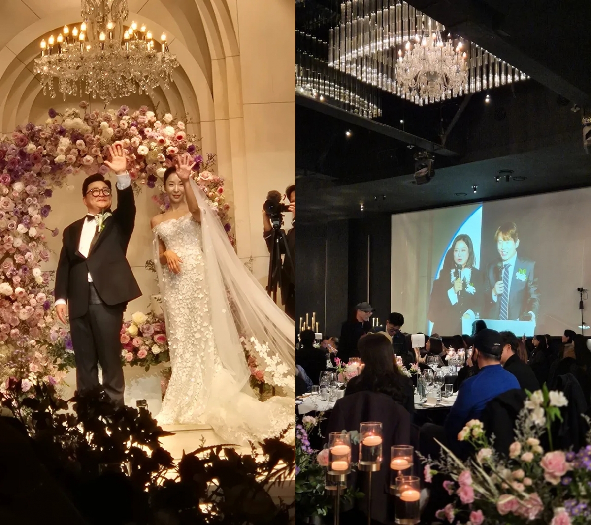 이어 후배 코미디언 김원효는 "유부남 윤정수. 형 이 단어 어색하지요? 축하해요"라고 신랑 입장 장면을 공개했고, 김지혜 또한 "정수 오빠 결혼식"이라며 윤정수와 원진서가 하객들에게 인사를 전하는 모습을 공개해 눈길을 끌었다.
