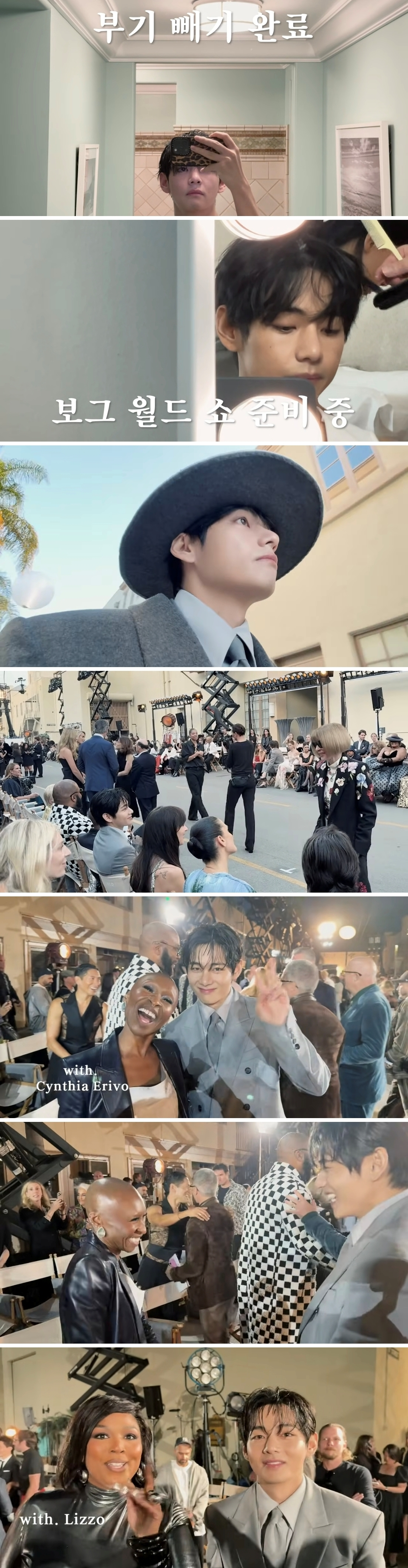 뷔는 리조(Lizzo)와도 오랜만에 만났다. 리조는 방탄소년단의 콘서트 관람은 물론 멤버들과 친밀한 관계를 유지하고 있다. 리조는 특히 뷔의 팬이라고 밝히며 팬심을 드러내고 있어 이날 둘의 만남은 화기애애한 분위기를 연출했다. 뷔를 보그 월드에 초대한 안나 윈투어가 뷔를 살뜰히 챙기는 모습도 포착됐다.