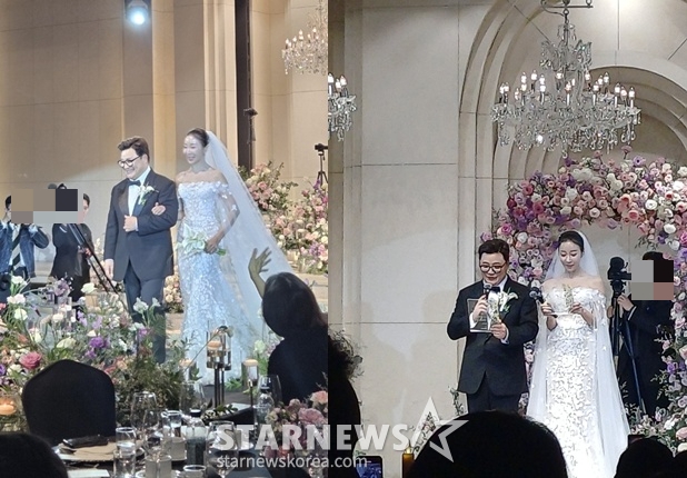결혼식 사회는 코미디언 김숙과 남창희가 맡았다. 특히 과거 JTBC 예능 프로그램 '님과 함께 시즌2 - 최고의 사랑'에서 윤정수와 가상 부부로 호흡을 맞췄던 김숙은 "내가 (사회를) 해도 되는지 모르겠다"며 "윤정수 씨의 간곡한 부탁으로 하게 됐다"고 너스레를 떨어 웃음을 유발했다. 김숙과 윤정수는 '님과 함께 시즌2 - 최고의 사랑' 방송 당시 남다른 '케미'로 시청자들에게 많은 즐거움과 웃음을 선사했다.