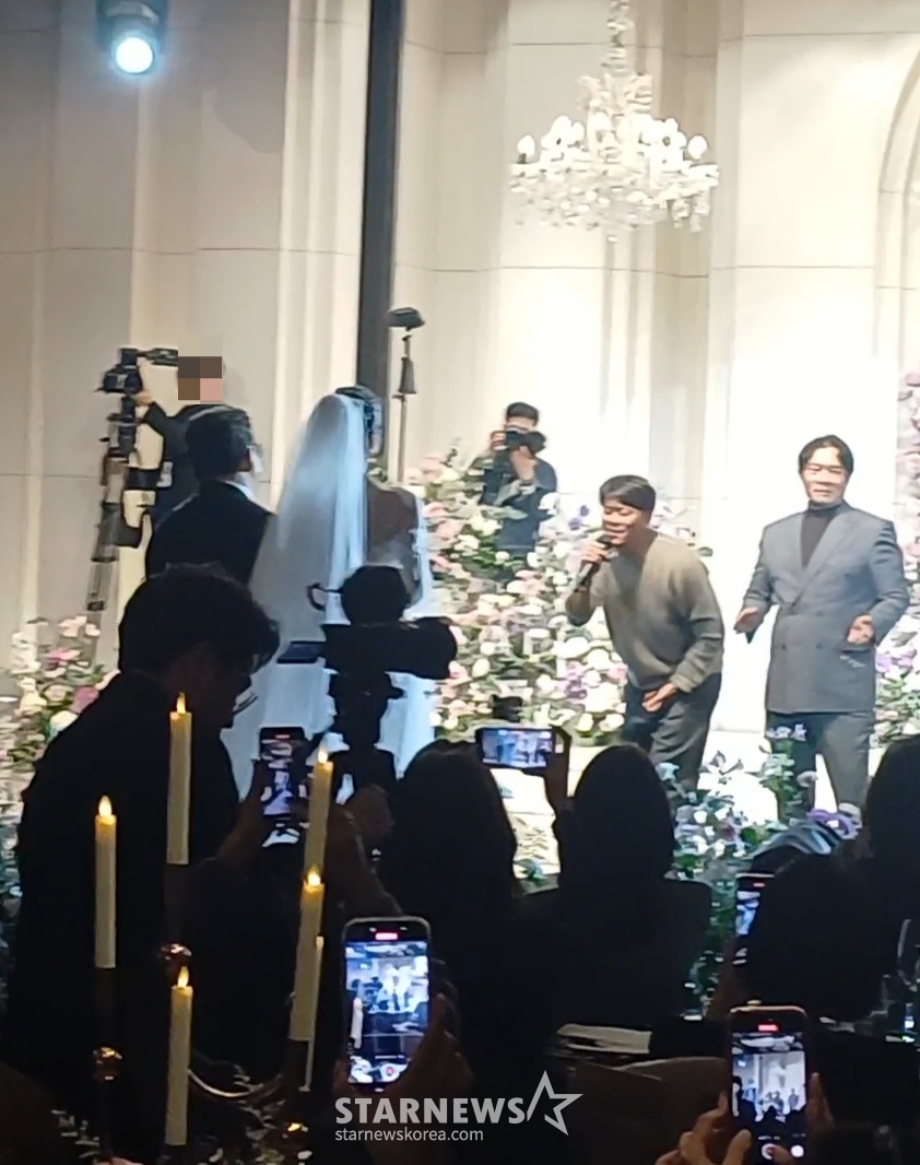 이날 축가는 혼성 그룹 쿨의 메인보컬 이재훈과 남성듀오 캔의 배기성, 가수 이무진이 불렀다. 이무진은 '청혼하지 않을 이유를 못 찾았어'로 로맨틱한 무드를 이끌었고, 절친 배기성은 히트곡 '내생에 봄날은...'을 열창하며 분위기를 띄웠다. 김지선, 심진화, 윤택 등은 무대에 난입해 춤을 추며 축제 분위기를 만들었다.