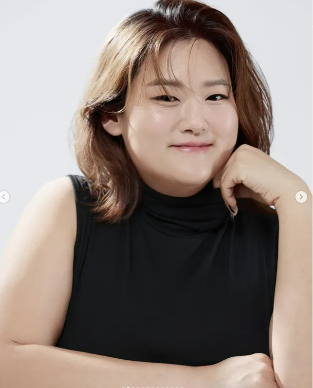 박수지는 블랙 민소매 의상을 입고 과거에 비해 슬림해진 모습을 전했다.