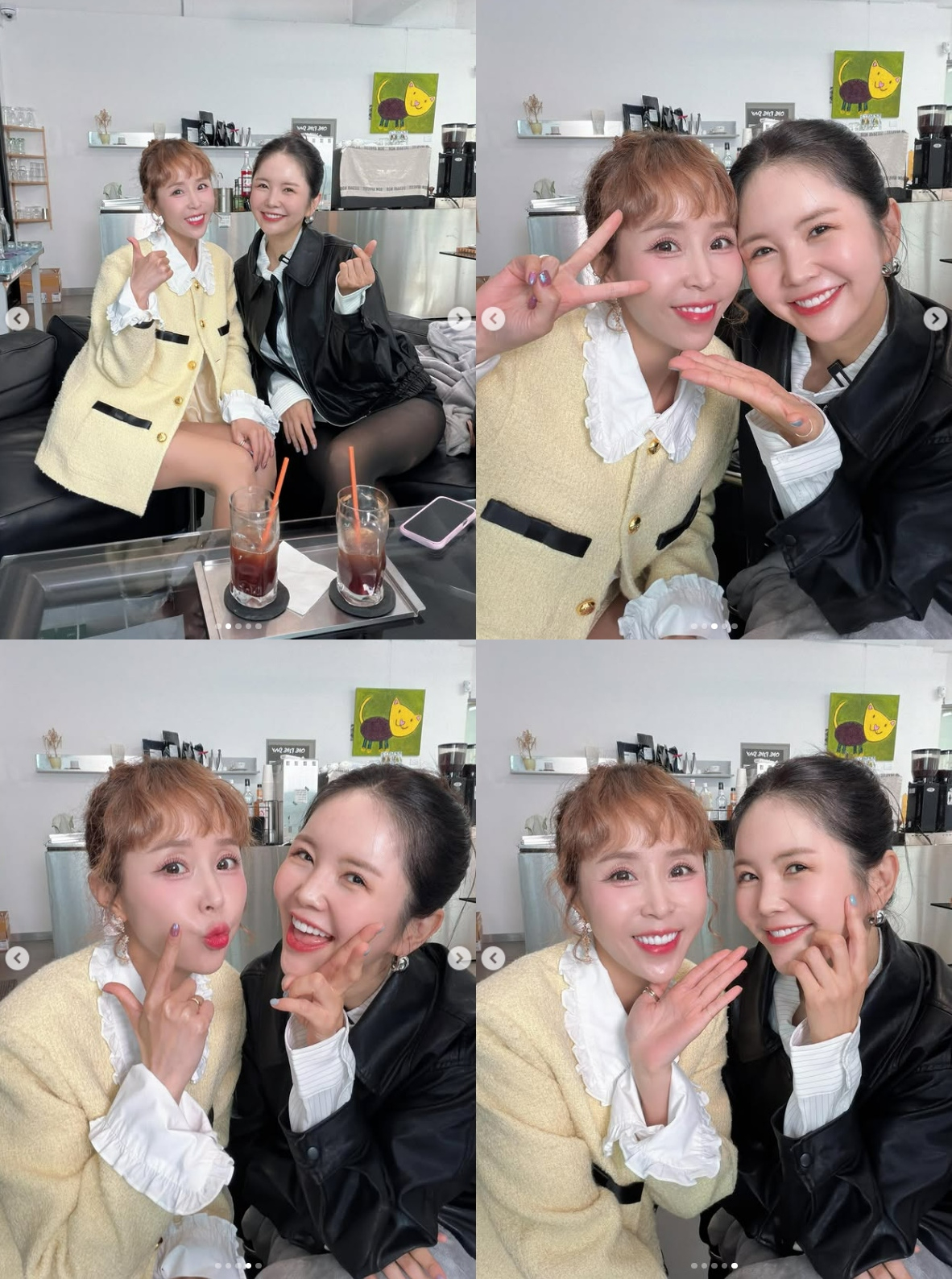 2일 오전 신지는 개인 SNS에 "노로바이러스로 심하게 고생하다가 이 사진 이제야 올리네~ #A급장영란"이라며 장영란과 함께 찍은 셀카 여러 장을 게재했다.