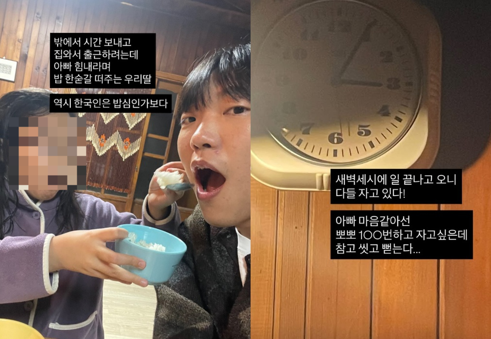 가수 겸 유튜버 최고기가 딸을 향한 애정을 숨기지 않았다. 최고기는 "새벽3시에 일끝나고 오니 다들 자고 있다. 아빠 마음같아선 뽀뽀 100번 하고 자고 싶은데 참고 씻고 뻗는다"라고 전했다.