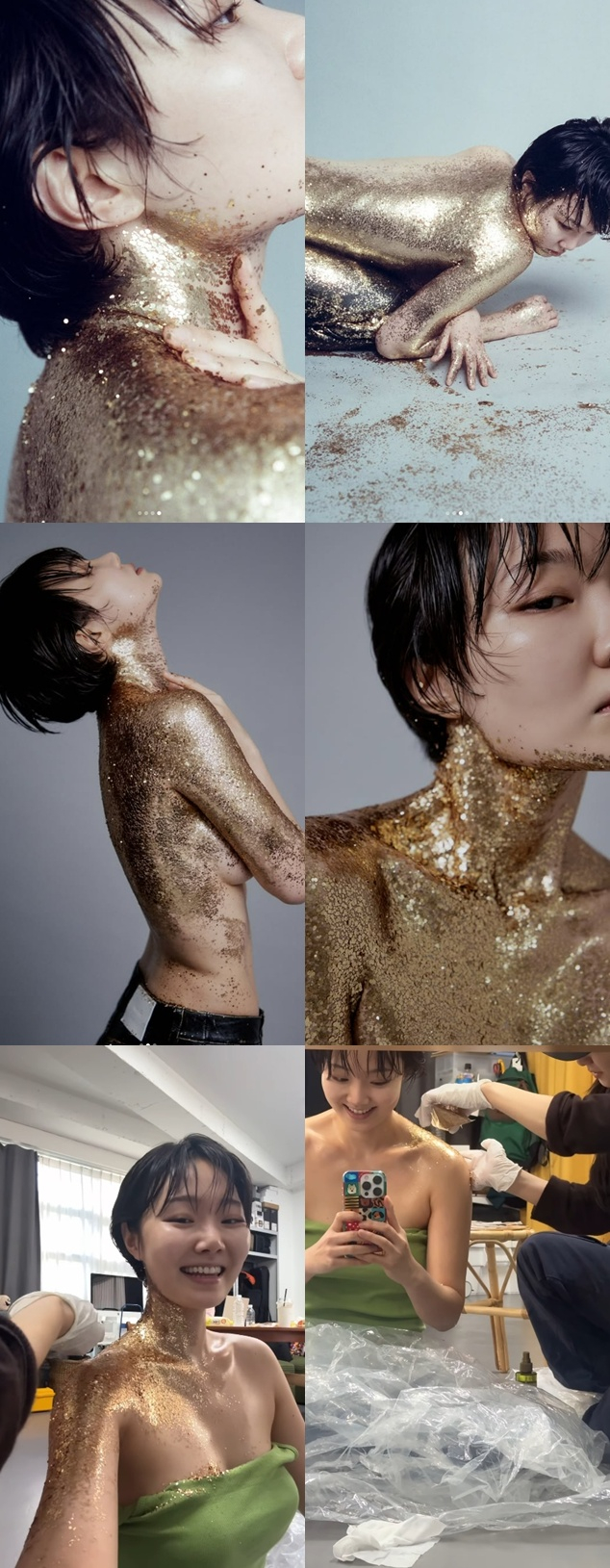 코미디언 이경실의 딸 배우 손수아가 '전신 금가루 화보' 비하인드를 공개했다.