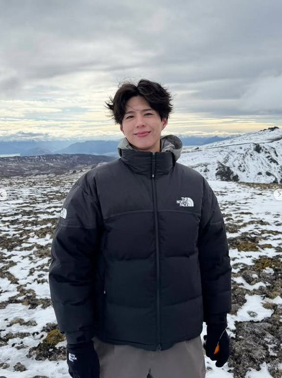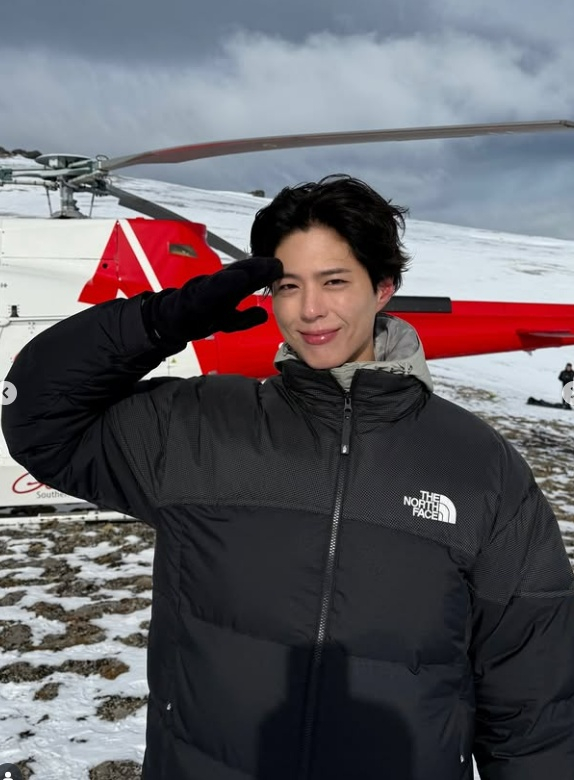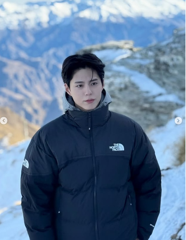 사진 속 박보검은 패션 브랜드 화보 촬영을 하러 나선 모습이었다. 그는 설산을 배경으로 캐주얼 점퍼 패션을 선보였다.