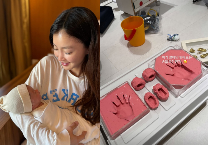 이시영은 4일 "이게 얼마만에 해보는 손발도장인지"라는 문구와 함께 손발도장 완성품을 공개했다.