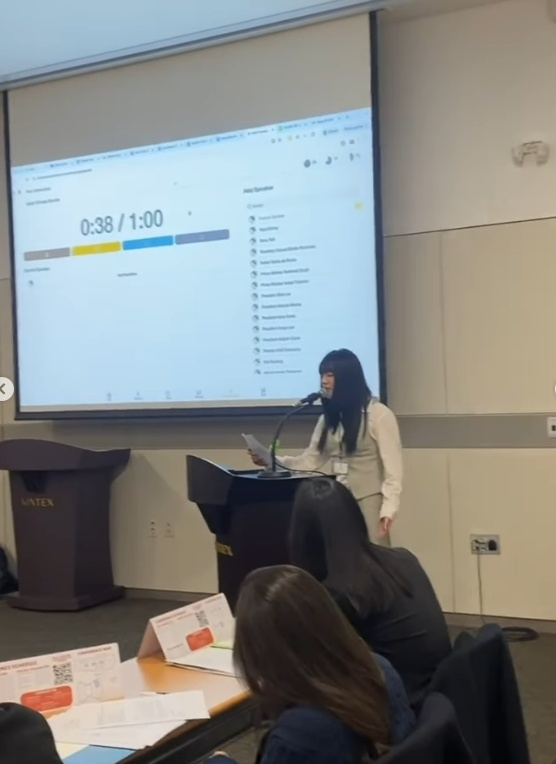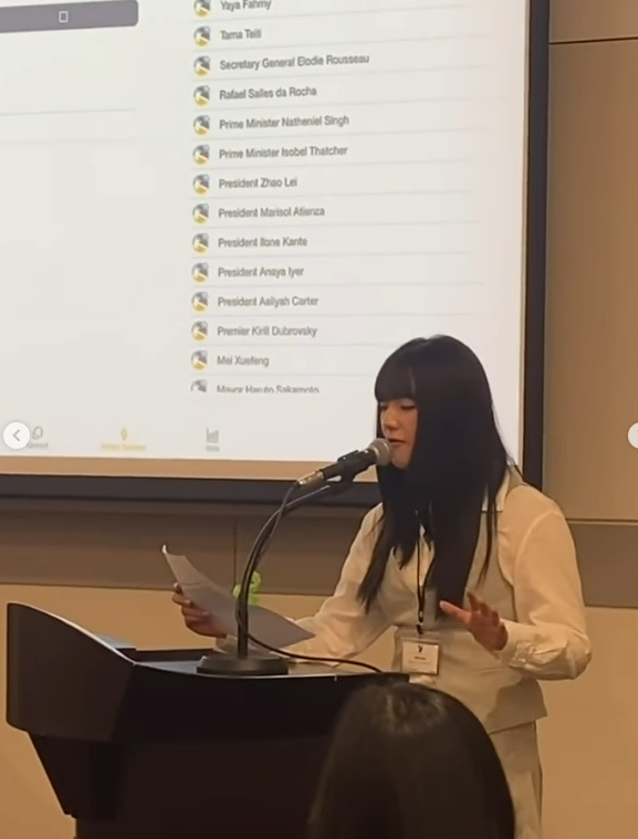 사진과 영상 속에는 이윤진 딸 소을이가 모의 UN에서 능숙한 영어로 자신감 넘치게 발표하는 모습이 담겨 있었다.