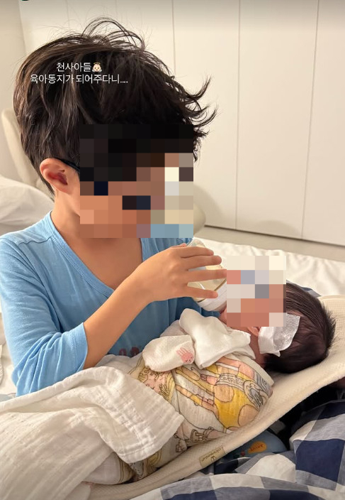 공개된 사진 속 이시영 아들은 새로운 방을 확인하며 기뻐한다. 또한 그는 동생인 딸을 품에 안고 분유를 먹이고 있다.