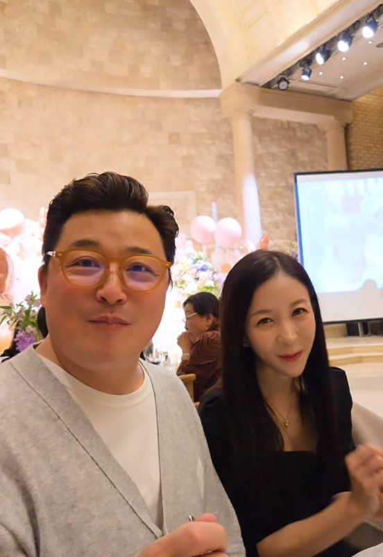 공개된 사진 속엔 윤성주, 원진서 부부가 결혼 후 류시원 둘째 딸 돌잔치에 참석해 환히 웃는 모습이다. 또, 윤해영은 윤정수와 인증샷을 찍고 있는 가운데 뒤로 류시원이 딸을 안고 지나가고 있다.