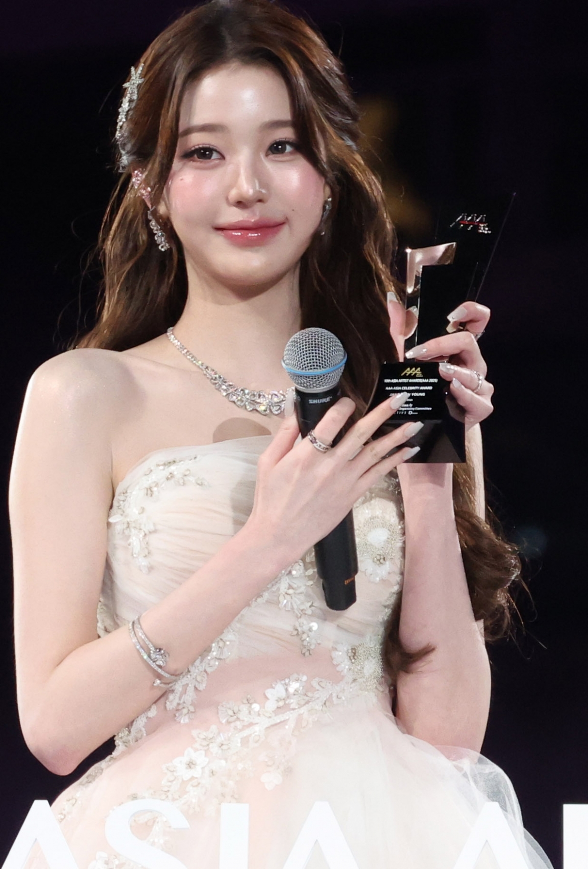 장원영은 최근 가오슝 내셔널 스타디움에서 개최된 '10주년 아시아 아티스트 어워즈 2025(10th Anniversary Asia Artist Awards 2025, '10주년 AAA 2025')'에서 'AAA 아시아 셀러브리티' 상과 '심볼 오브 AAA' 상에 이어 'AAA 그랜드 프레젠스 오브 K팝' 상까지 수상하며 3관왕에 올랐다.