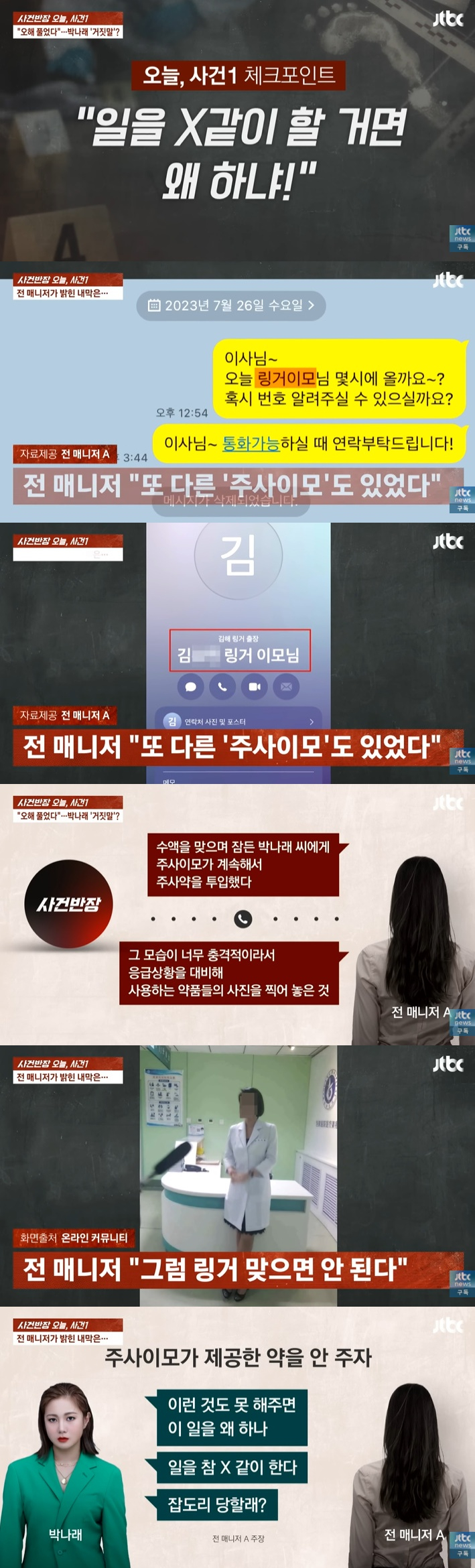 지난 10일 방송된 JTBC '사건반장'에서는 박나래 전 매니저 A씨의 주장을 전했다.