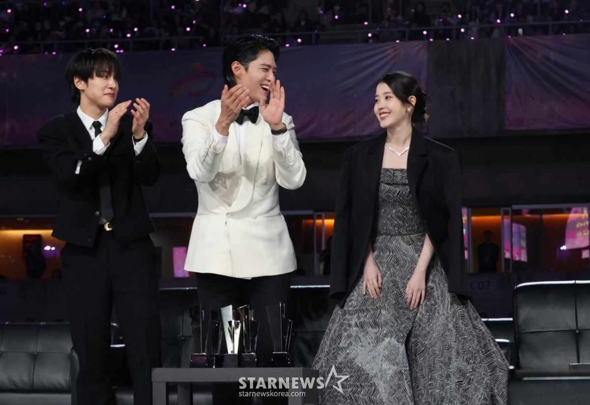 또한 아이유와 박보검은 'AAA 2025'가 진행되는 동안 아티스트석에 나란히 앉아 노래를 따라 부르며 춤을 추거나 휴대폰으로 가수들의 무대를 촬영하는 모습들이 포착되면서 '폭싹 속았수다' 팬들에게 반가움을 안겼다.